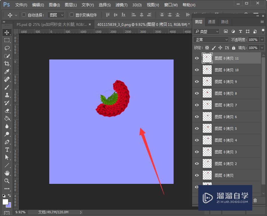 最后我们将所有复制的图层ctrl+E合并,然后调整大小即可。