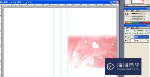 点击菜单中的“图像-→旋转画布→90度顺时针”按Ctrl+R调出标尺,用鼠标从左到右拉出几条参考线,如果发现画布太小,可能放大,左下角有个百分比,可以输入文字,然后用鼠标将画布拉长拉宽到没有滑动条的样子,这样方便后面做设计。