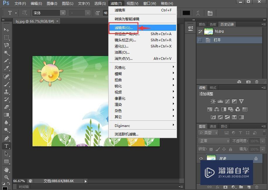 点击滤镜,选择滤镜库;