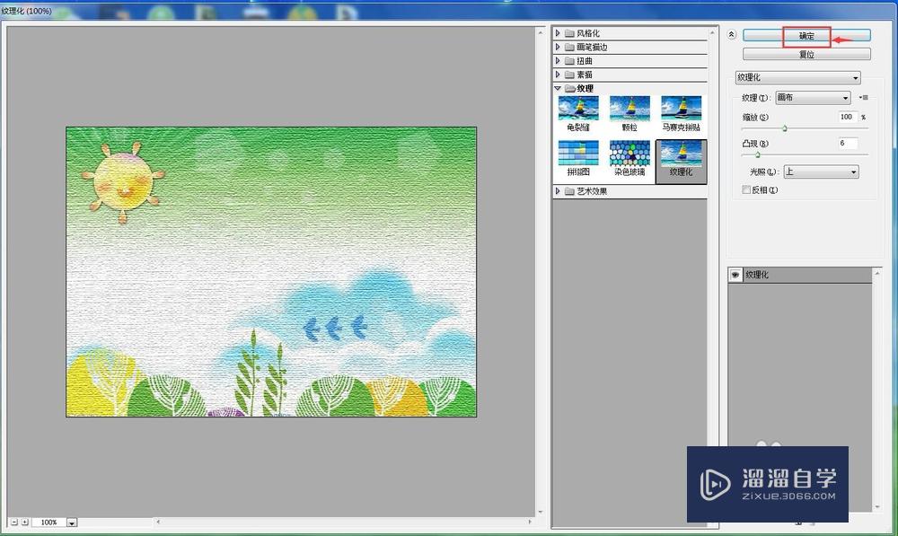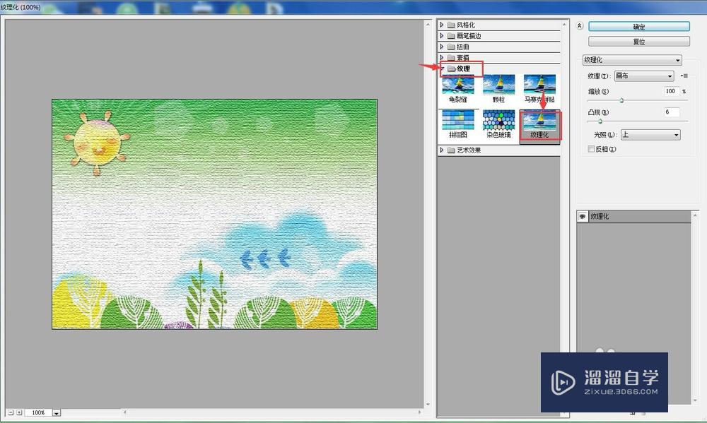在出现的滤镜库中选择纹理文件夹,点击纹理化效果;