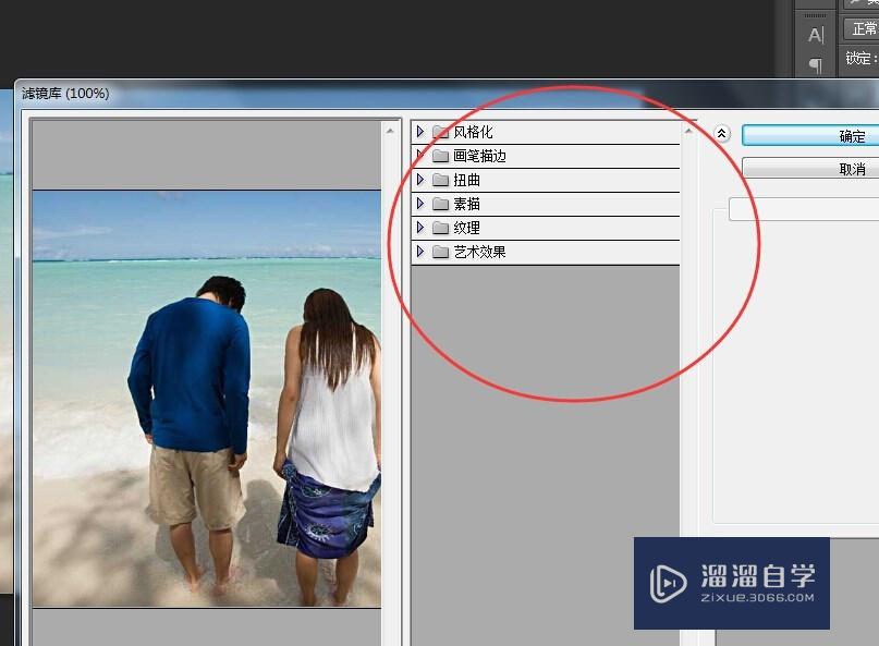 打开“滤镜库”会弹出一个编辑框,里面有很多种艺术风格可供选择。